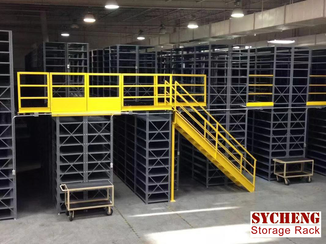 閣樓貨架系統(tǒng),通常利用中型擱板式貨架或重型擱板式貨架作為主體支撐加上樓面板。根據(jù)貨架單元的總負(fù)載重量來(lái)決定選用何種貨架,樓面板通常選用冷軋型鋼樓板、花紋鋼樓板或鋼格柵樓板。近幾年多用冷軋型鋼樓板,它具有承載能力強(qiáng)、整體性好、承載均勻性好、精度高、表面平整、易鎖定等優(yōu)勢(shì),有多種類型可選,并且易匹配照明系統(tǒng),存取、管理均較為方便。