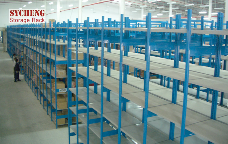 3.因?yàn)槭巧⒀b存取,不是采用托盤承載貨物,而且因?yàn)樨浳锎笮〔淮?,采用多立柱和橫梁的焊接形式來(lái)搭建貨架,上面鋪上木板。這樣能降低每套貨架的成本,還能保證貨物的安全存取。