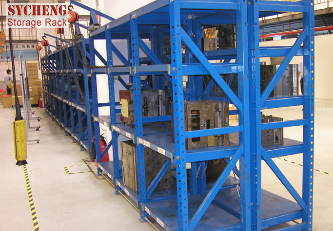 模具架:主要存放各種模具物品,根據(jù)層載能力要求分為輕型模具貨架和 重型模具貨架。貨架頂部可配置移動(dòng)葫蘆車(chē),以方便模具的起吊。尺寸為3100*600*2000, 層載重800KG,抽屜尺寸900*600,層高540、540、500 天車(chē)載重500KG。